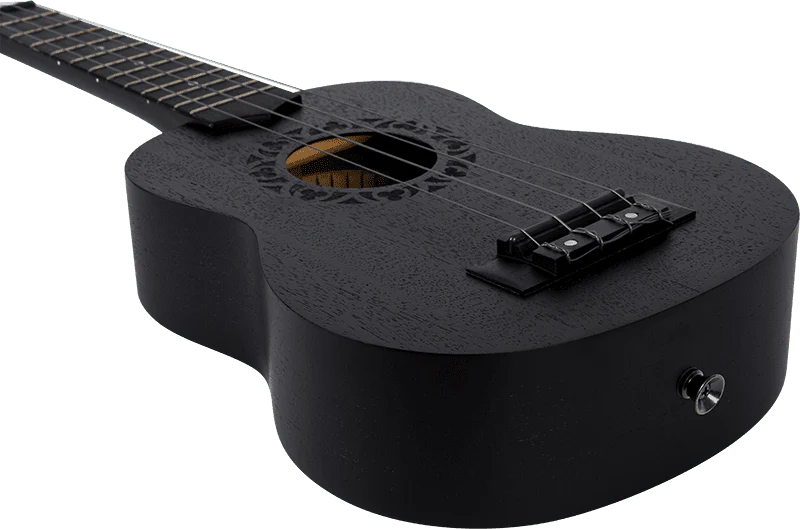 The Flight NUS310BB Soprano Ukulele, affectionately known as the "Blackbird," is a sleek and stylish instrument that proves a classic soprano can have a modern, edgy soul. This model is crafted from high-quality sapele, a tonewood that delivers a bright, punchy, and traditional ukulele chime with a warm mid-range balance. As a unique entry in the diverse catalogue of Flight Ukuleles, the Blackbird features a stunning black stain that allows the natural grain of the wood to peek through, offering a sophisticated look that stands out in any collection. The satin finish is not only smooth to the touch but also ensures the wood remains resonant, producing a clear and cheerful voice that is perfect for players of all levels.